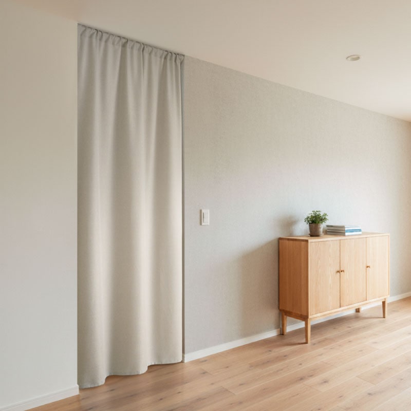 非遮光生地のため、間仕切りとして使用しても光を完全に遮らず、仕切った向こう側からやわらかな明るさを感じられます。